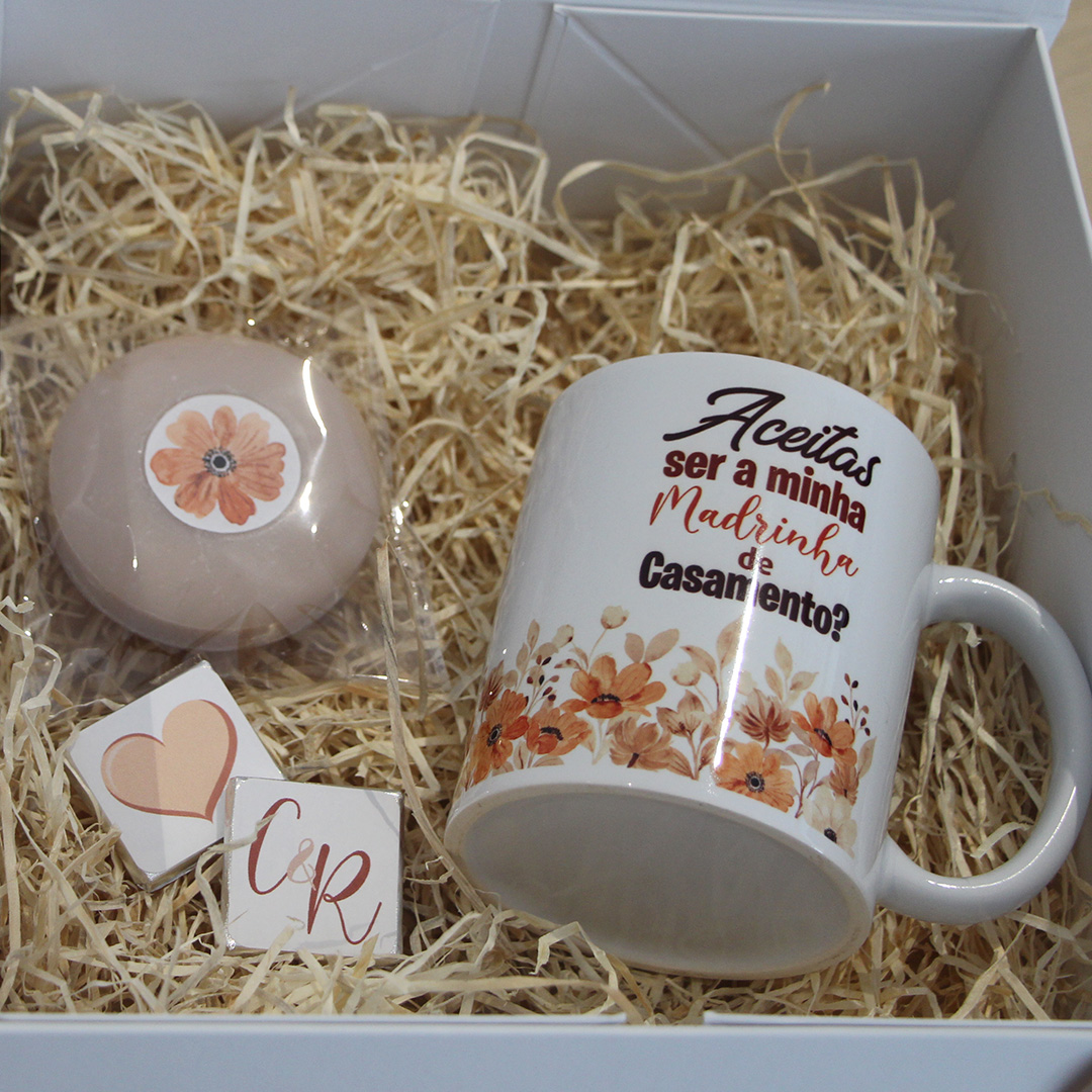 Convide sua madrinha de casamento com caixa personalizada, delicada e cheia de significado. Um momento único começa aqui.