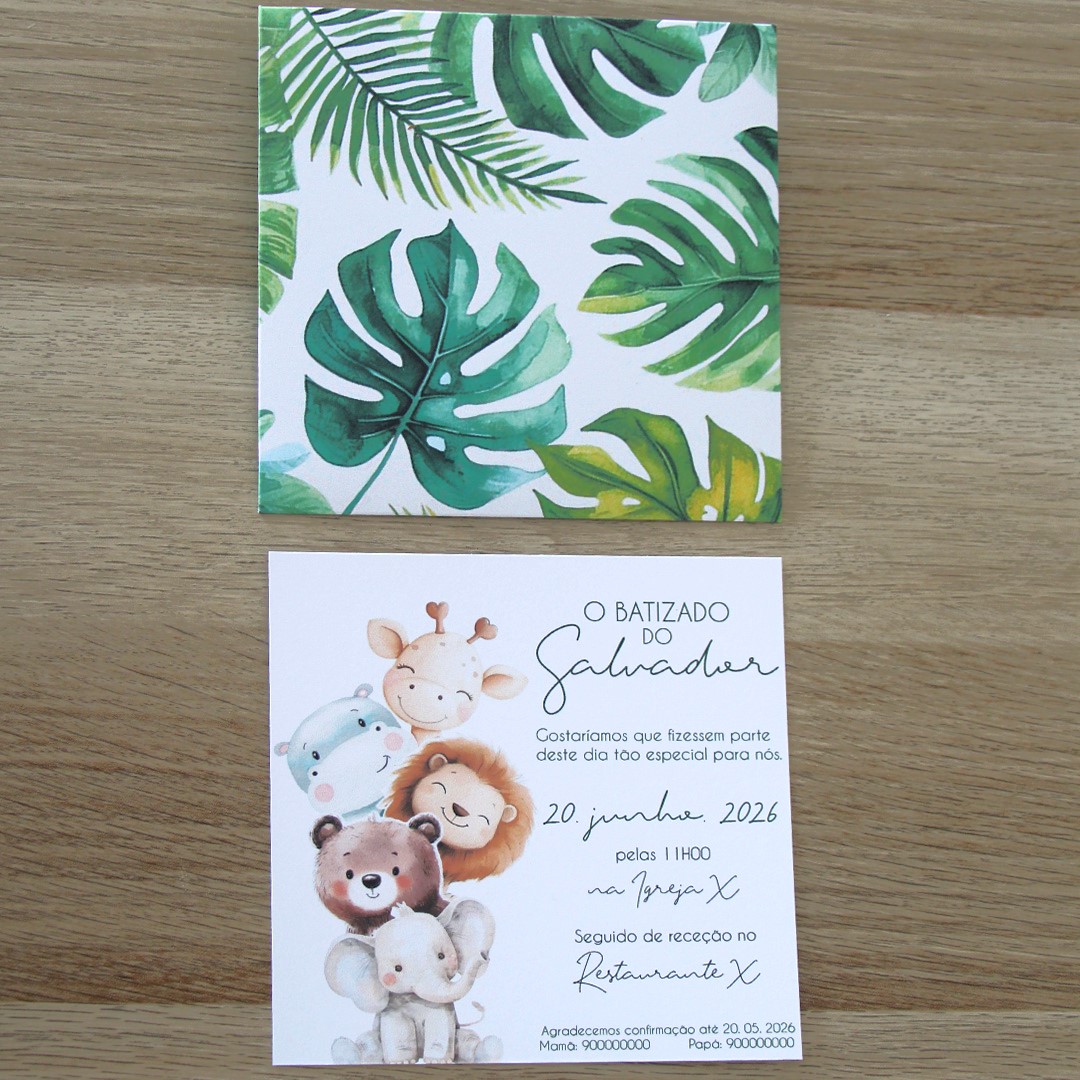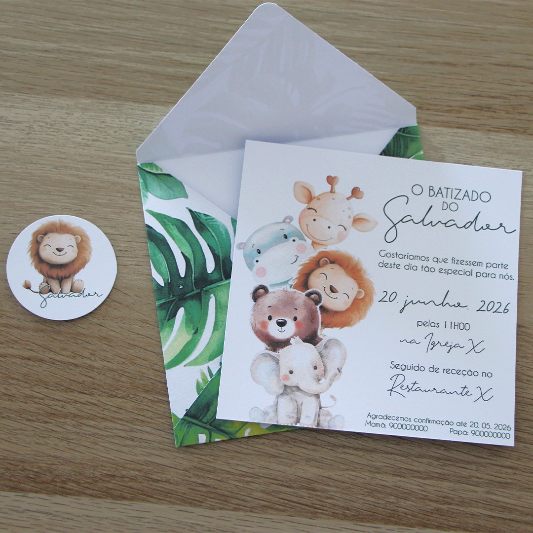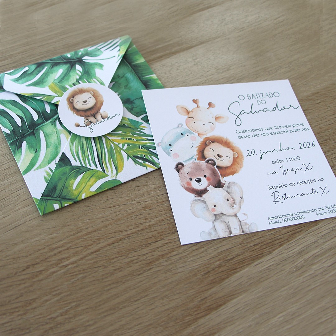 Encante seus convidados com um convite de batizado exclusivo no tema safari